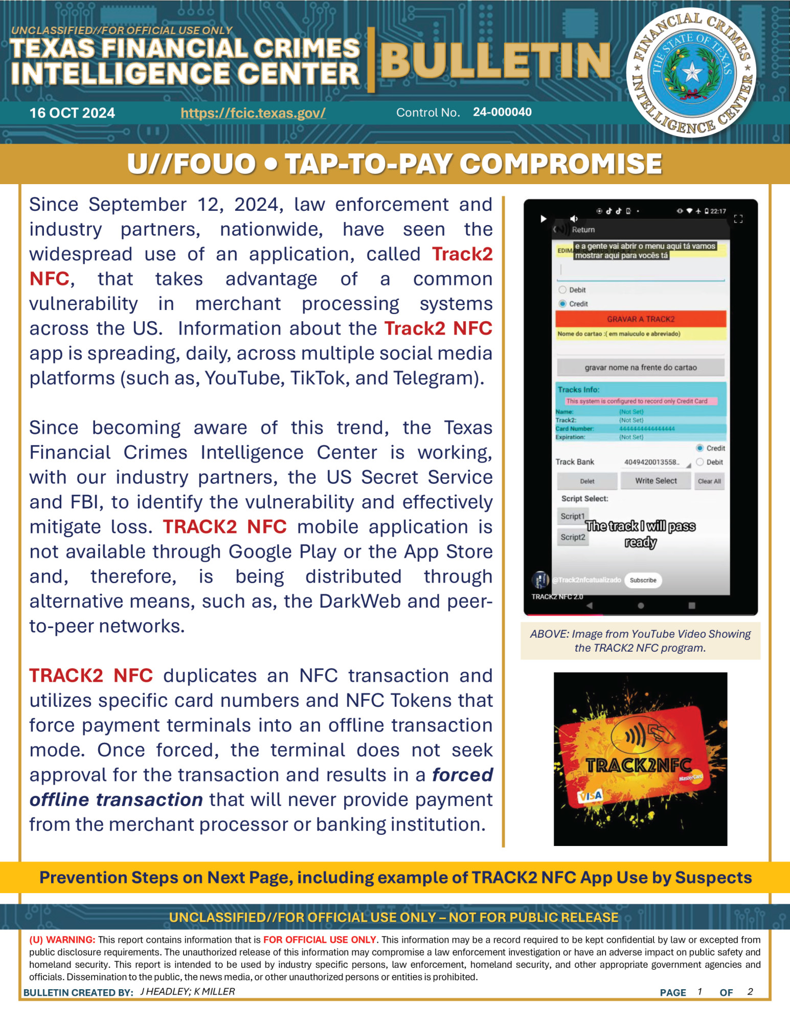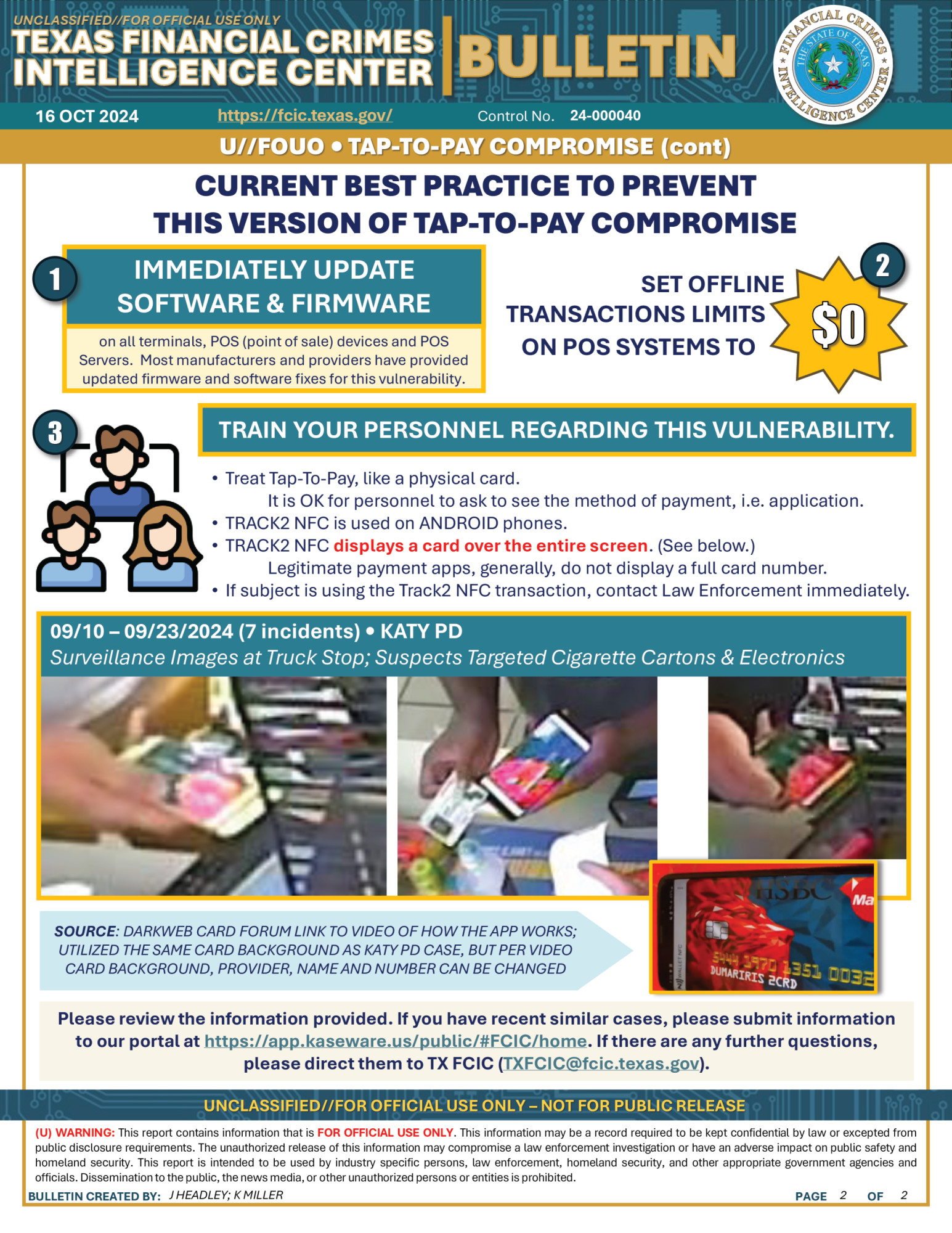 ATTN Retailers | U//FOUO - Tap-To-Pay Compromise Method Back to TFFA | Daily Buzz ATTN Retailers | U//FOUO - Tap-To-Pay Compromise Method By Texas Food and Fuel Association 10/17/2024 Images × Share × Email Facebook LinkedIn X Pinterest Powered By GrowthZone