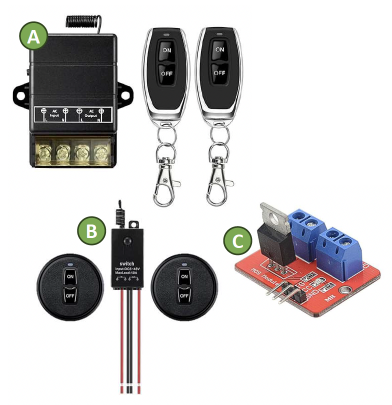 1. The suspect uses a connector and wires to tap directly into the control board on the pump. 2. This 110v power then runs to an RF AC power switch (Figure A). https://a.co/d/eJBjR9L 3. From the AC switch the power runs around and to the door of the dispenser it is routed through the pump handle switch, which runs on 110 but has a built in DC converter. 4. From the pump handle switch DC power then runs into an RF remote DC switch (Figure B). https://a.co/d/iCETKux 5. From the DC adapter the power then runs through an Arduino board capable of setting the power to 24V and 5A that then taps into the positive and neutral lines for the control valve (Figure C). https://a.co/d/9hd7VKc | ![]() |
